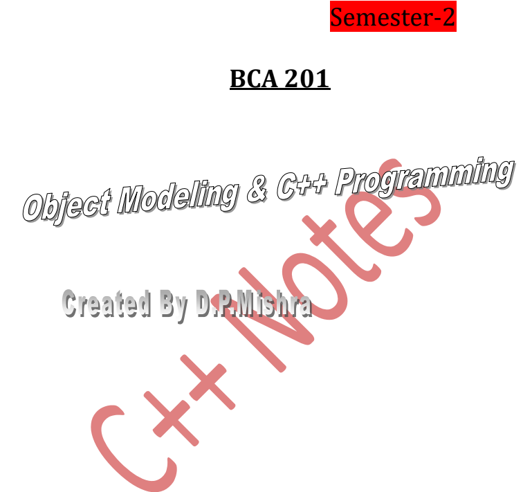 Posted inStudy Materials C++ Notes For BCA – VBSPU BCA 2nd Semester PDF Posted by D.P. Mishra January 28, 20218 C++ Notes For BCA: The Complete class note of c++, the complete c++ tutorial for beginners according to VBSPU syllabus by reading c++ tutorial you can understand how to study for bca. Screenshots of the Notes Download Links of the C++ Notes Download D.P. Mishra A Blogger, Graphics designer, web designer, interested in learning new things daily. View All Posts Post navigation Next Post[Latest] System Analysis and Design Notes || Free Download Pdf
